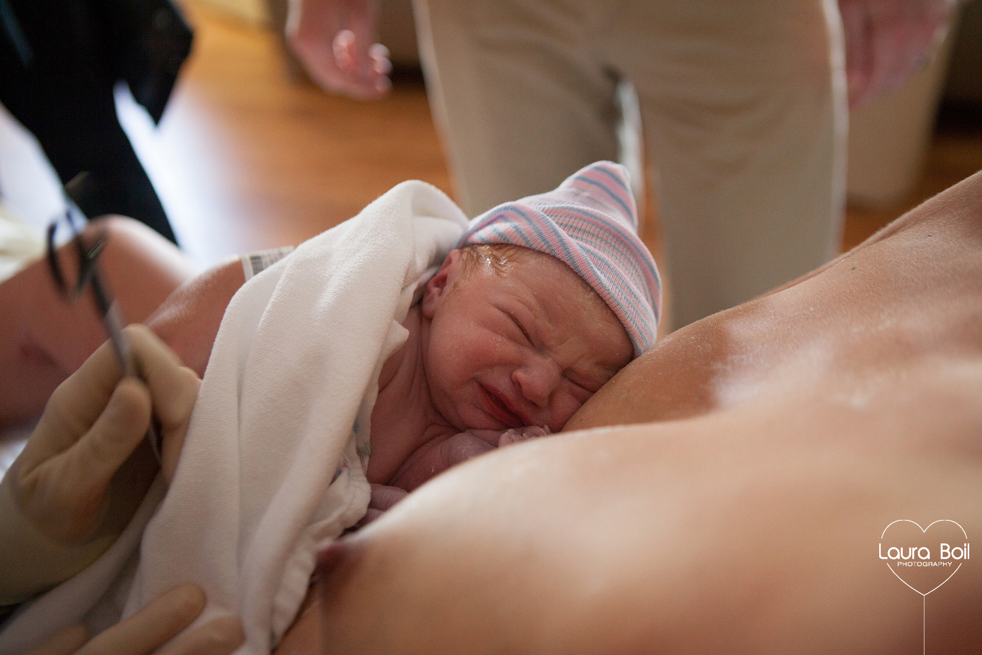 Laura, dont cette expérience l’a beaucoup subjuguée, nous a confié dans une récente interview : » Je me suis tellement régalée, l’ambiance était sereine, calme« . Sur son blog elle se confie aussi sur cet accouchement : » La maman m’a impressionné par sa douceur. Ses gémissements étaient profonds, bestiaux et en même temps empreints d’un grand self-control ». Puis, visiblement très émue, la photographe a ajouté : « Elle l’a prise dans ses bras et c’était magique ! A ce moment-là, je pleurais derrière mon objectif, je réalisais un de mes rêves et j’étais si heureuse de partager ça avec Amy et Christian. » Et nous, nous la remercions d’avoir bien voulu nous partager ces splendides clichés.