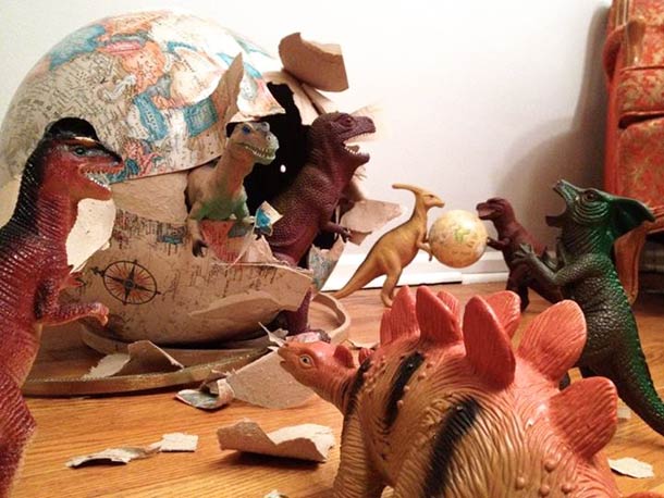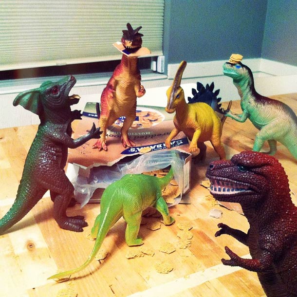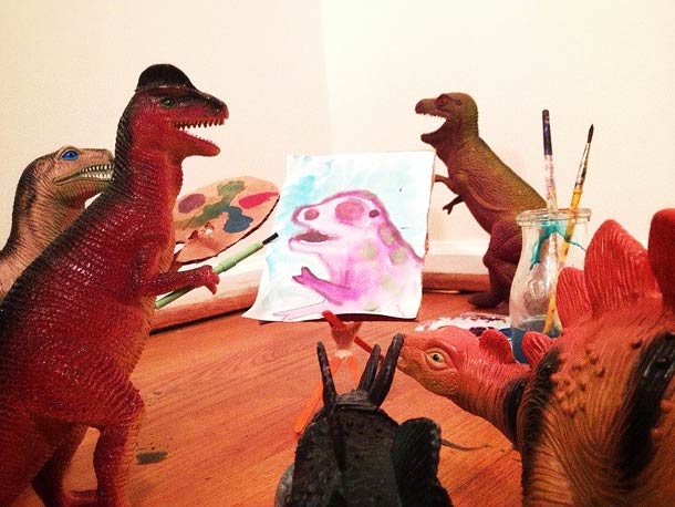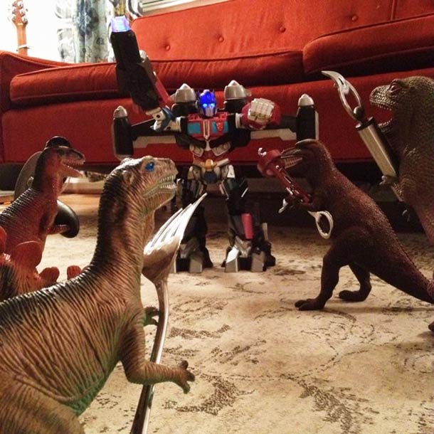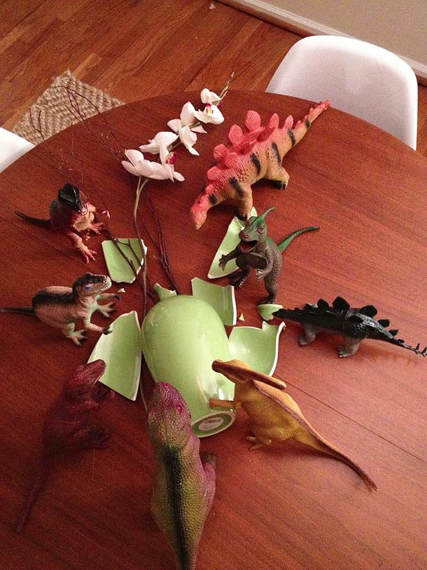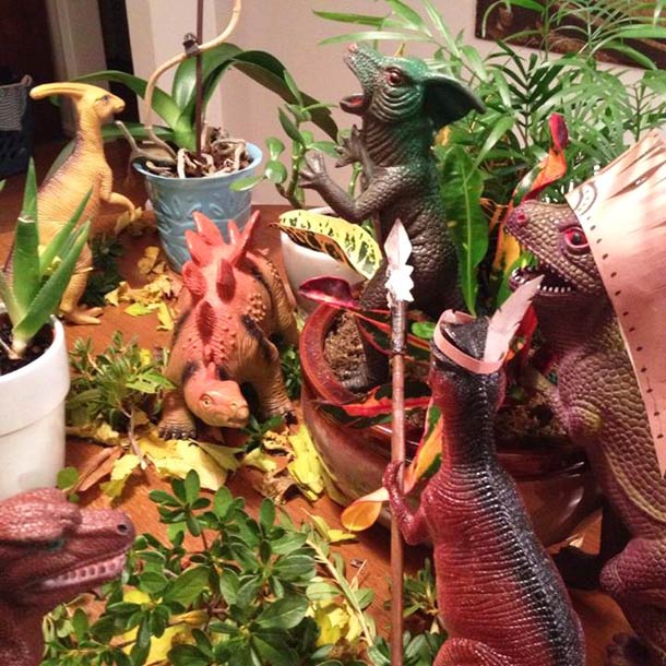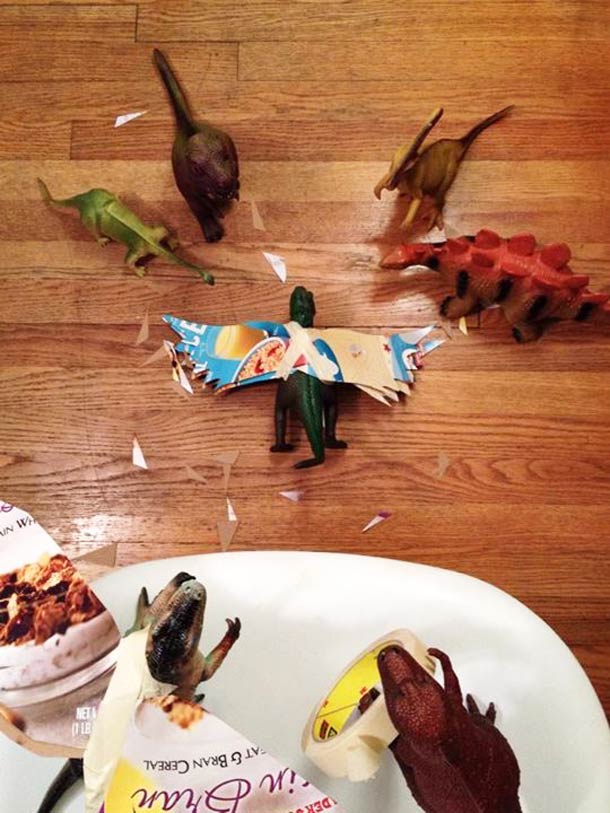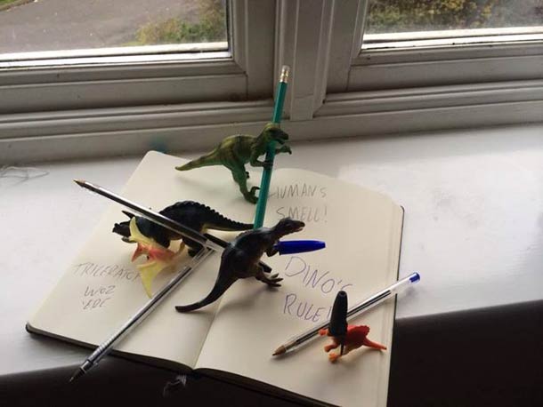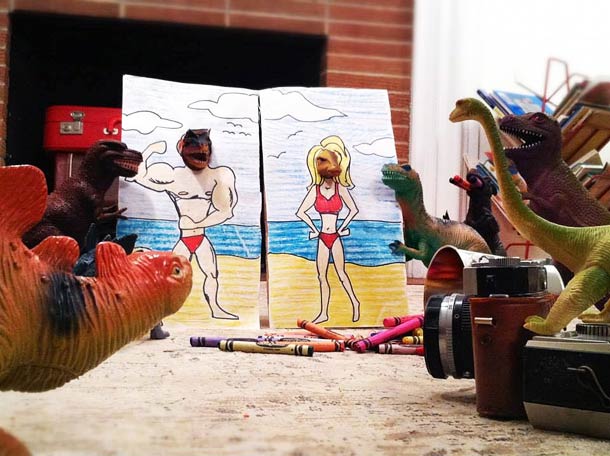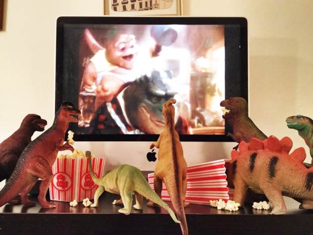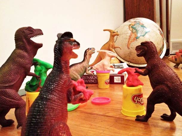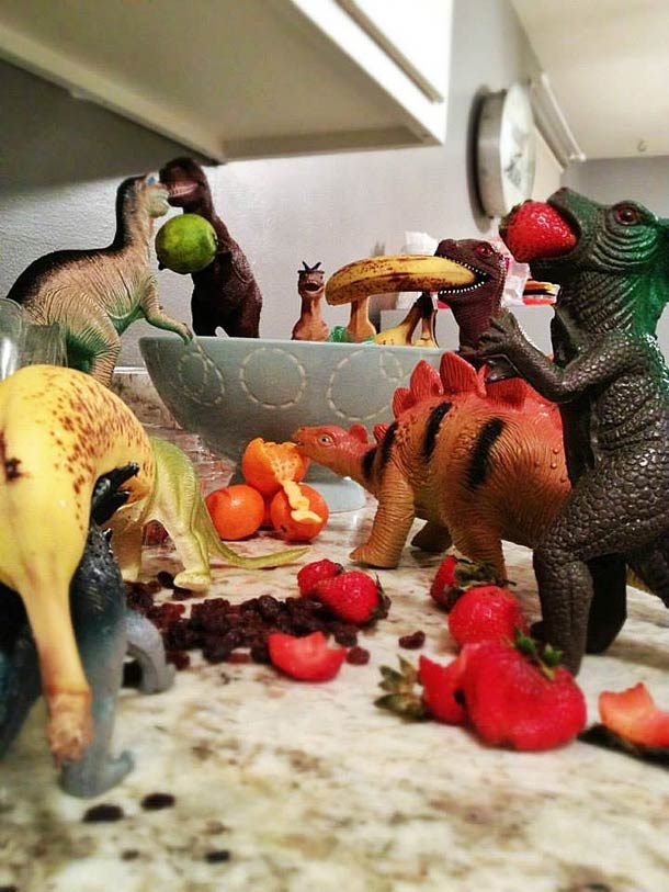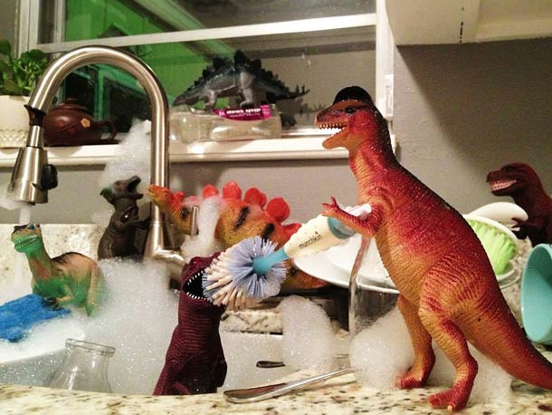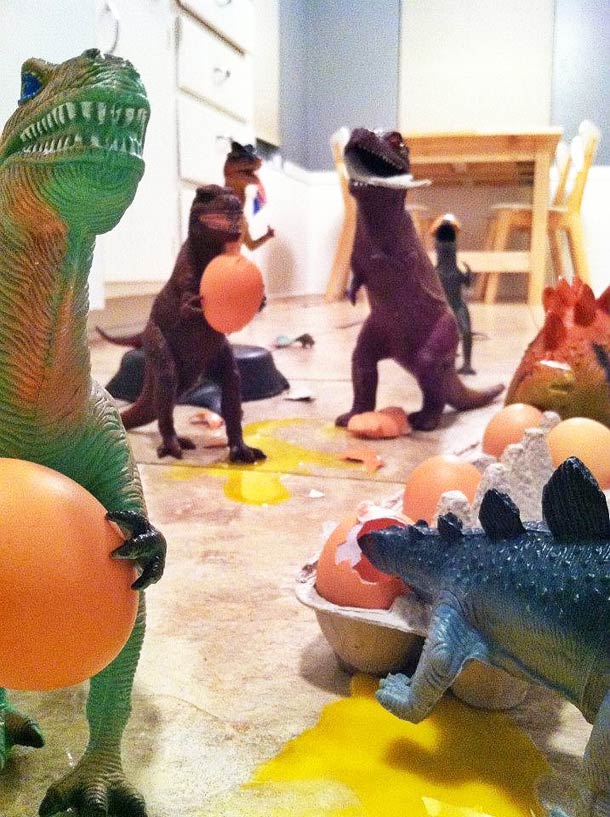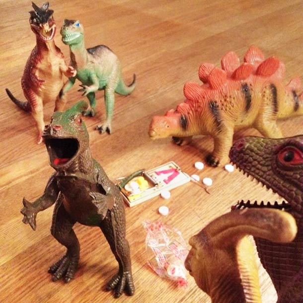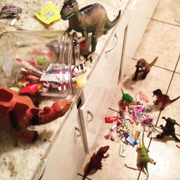 Et si les jouets en plastique étaient vivants ? Vous savez, comme dans le dessin animé Toy Story ! C’est ce que ces parents tentent de faire croire à leurs bambins en tout cas… Quand les loulous sont couchés, ces grands enfants mettent en scène des dinosaures en plastique et leur font vivre d’incroyables aventures. Et surprise, imaginez les loulous qui, au petit matin, se réveillent, et les découvrent en pleine action, dévalisant la boîte de céréales ou mettant le souk dans les pots de fleurs.  Bien que cela soit vraiment hilarant, il y a une raison pour que ces drôles de parents mettent en scène ces petits jouets… Ils veulent que leurs enfants puissent encore rêver de mystère et de magie à l’heure où toutes les questions qu’ils se posent trouvent une réponse sur Internet. Ces derniers tiennent en effet, vraiment, à préserver cette part d’imagination et d’émerveillement dont seuls les enfants ont le secret.