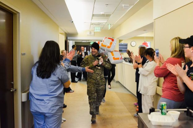 Enfin arrivé à l’aéroport d’Atlanta, c’est Ally, la meilleure amie de Brittany, qui est allée chercher Zach en urgence pour l’emmener à l’hôpital. Et c’est toute l’équipe de l’hôpital qui l’attendait pour le mener directement à Brittany. Elle l’accueillit avec des applaudissements, lui libéra le passage et lui donna des ballons ainsi qu’un ours en peluche. « L’Hôpital Piedmont a été merveilleux ! Tout le monde est venu m’encourager quand je suis sorti de la voiture, m’offrant le meilleur accueil que j’ai reçu de toute ma vie ! », raconte Zach. Il est arrivé jusqu’à Brittany, juste après qu’elle ait reçu sa péridurale. Le sergent a alors enfin eu l’occasion de voir le ventre rond de sa femme, peu de temps avant qu’elle commence à pousser. « Quand j’ai entendu tout le monde applaudir et crier depuis le couloir, mes yeux se sont remplis de larmes. J’ai su que mon mari avait réussi à rentrer. Quand je l’ai vu passer la porte, j’ai cru à un rêve. Après un câlin et un baiser de bienvenue, je n’ai jamais été aussi motivée de ma vie », se souvient Brittany.