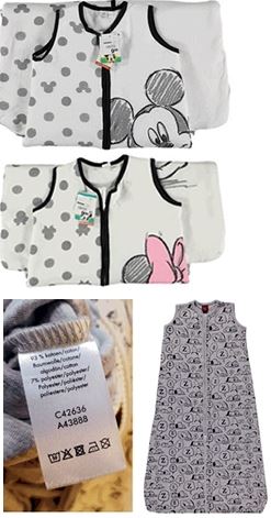 Les gigoteuses Mickey et Minnie ont été commercialisées entre juin 2017 et septembre 2018, tandis que celles qui sont à l’effigie de Snoopy l’ont été entre juin et septembre 2018. Alors si vous souhaitez vérifier que vous ne les avez pas en votre possession, regardez simplement leurs références, indiquées sur l’étiquette de lavage à l’intérieur du vêtement :
