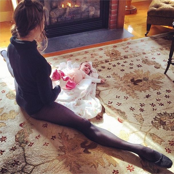 Vous vous rappelez de Mary Helen Bowers, cette danseuse étoile qui posait enceinte ? Nous l’avions vu sur ses photos, sa grossesse ne l’empêchait pas de s’entraîner. Le 27 décembre dernier, entre deux entrechats, la jeune femme a mis au monde un petite princesse appelée Lumina Belle. Et c’est à sa manière que la ballerine nous présente sa petite puce. Une future ballerine ? Grand écart et gambettes en l’air, la petite Lumina Belle observe avec ses grands yeux ronds sa maman s’exercer à coté d’elle.