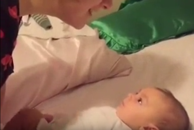 Quelle surprise pour cette maman qui après avoir dit « je t’aime » à son petit bout de chou, entend ce dernier tenter de lui répondre la même chose… En tous les cas, c’est ce que l’on croit nous aussi entendre dans la bouche de cet adorable bébé âgé de 3 mois. Vous entendez la même chose que nous les amies ? La scène est si mignonne.