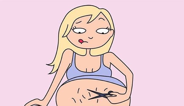 J’adore la grossesse, mais par contre ces poils, qu’est-ce qu’ils font là ? Je n’avais jamais remarqué leur présence ! C’est aussi arrivé à l’illustratrice de ce dessin, Line Severinsen ! Et vous des petits nouveaux sur le bidou ?