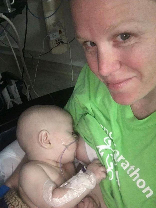 Pendant un temps, c’est bien le lait maternel qui nourrissait ce bébé malade, mais par le biais d’une perfusion. Ashleigh n’a pas voulu se faire à l’idée qu’elle ne pourrait plus allaiter Lincoln. A force de persévérance, cette maman a pu continuer à allaiter Lincoln et, selon elle, » l’allaitement est devenu pour Lincoln un moment de réconfort pendant qu’on attendait le diagnostic et après « . Pendant sa chimio, elle n’a pas non plus arrêté, disant de Lincoln « qu’il se nourrissait comme un vrai champion. Il a besoin de mon lait pour qu’on combatte la maladie ensemble ».