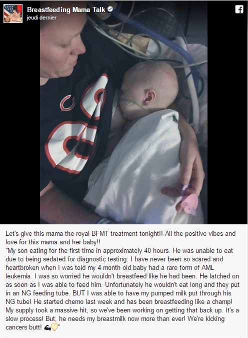 Ashleigh a tenu à partager ces petits moments de bonheur malgré la maladie avec les autres mamans. Elle a donc posté sur le groupe Breadsfeeding Mama Talk la photo du premier jour où Lincoln a pu de nouveau boire son lait.