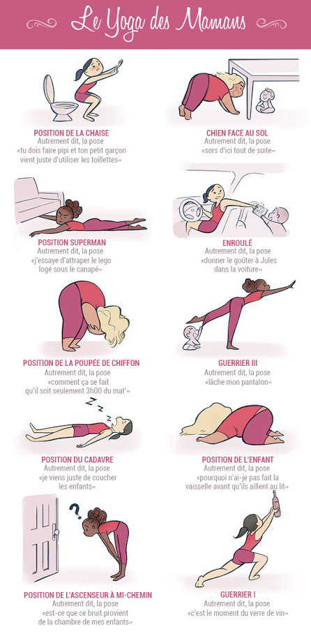 Vous rêvez de prendre un peu de temps pour vous et vous mettre (enfin) au yoga pour décompresser ? Pas besoin de vous inscrire à des cours, je vous assure. Depuis que vous êtes maman, vous en faites déjà tous les jours, et non-stop en plus. La preuve…
