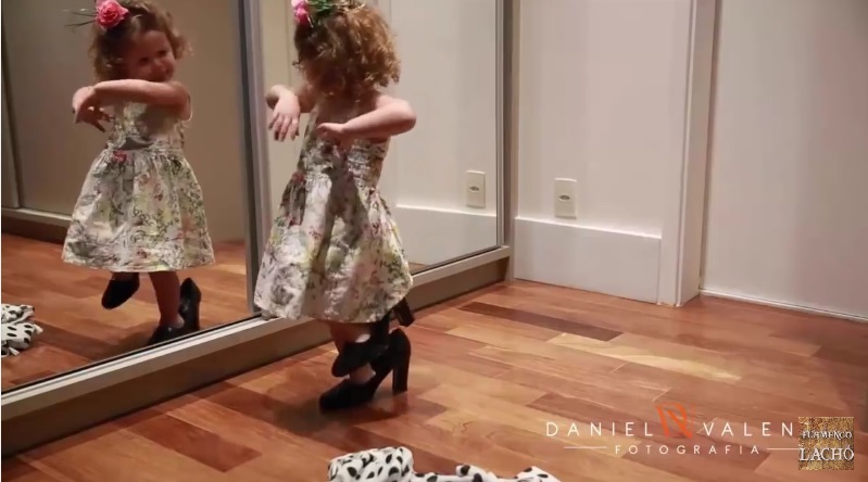 Pour cette choupette, la taille des talons n’a aucune importance, tant qu’elle peut danser. Et pour preuve ! On la voit en train de danser du flamenco, alors que les chaussures sont mille fois trop grandes pour elle… Mais elle est trop mignonne ! Son papa Daniel, l’a d’ailleurs filmée en pleine démonstration. Olé Señorita !