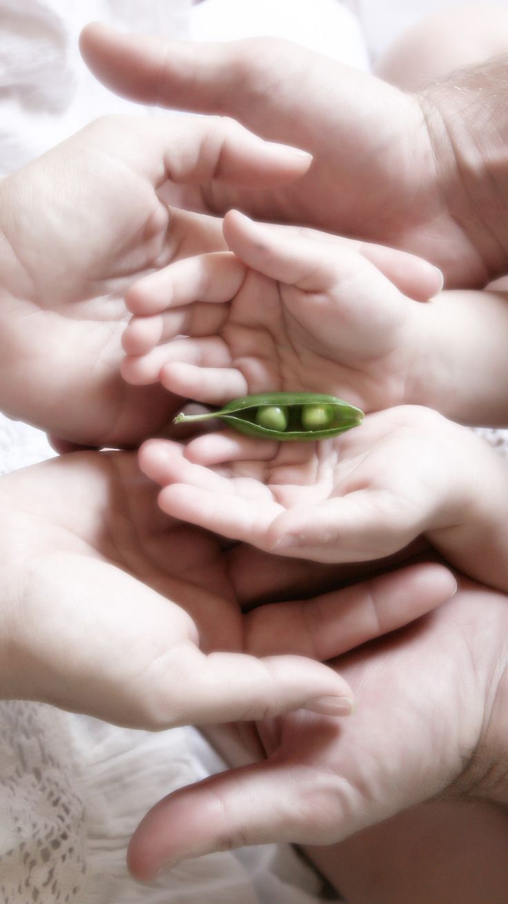 Vous attendez attendez une jolie surprise… Ou plutôt deux jolies surprises ! Les mains du futur papa, de la future maman et du petit bout qui va devenir l’ainé de la famille sont heureux de tenir deux petits pois dans leur écorce. Ils symbolisent les deux bébés jumeaux blottis tout au chaud dans le ventre de leur maman !
