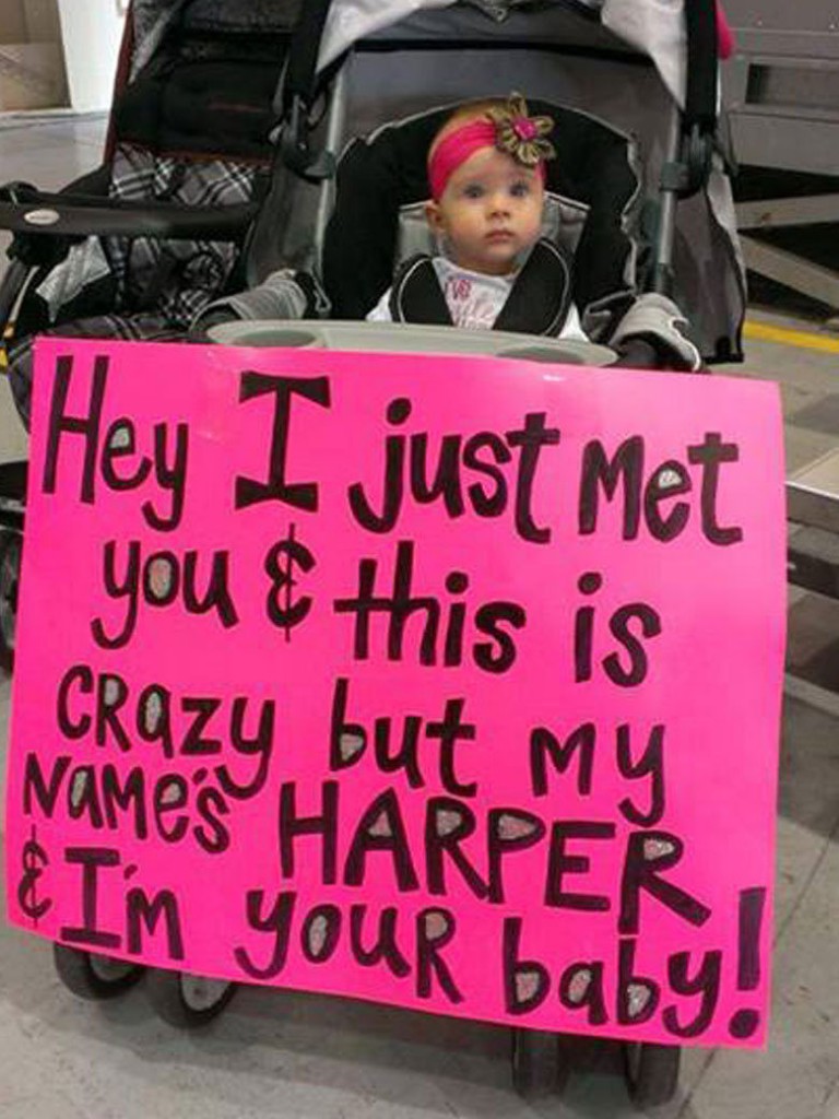 On peut donc lire devant la petite puce : « Hé, je viens juste de te rencontrer, et c’est fou, mais mon prénom est Harper et je suis ton bébé » ! Non seulement elle a attiré l’œil de Cole, mais également celui du public ! Sa photo a été likée plus de 2 millions de fois. Entre l’humour bien placé de la maman et l’émotion dégagée par le contexte, normal que le public soit fan !