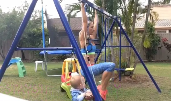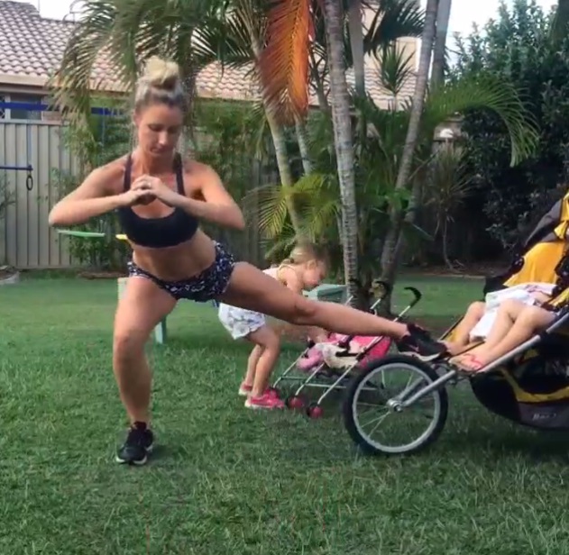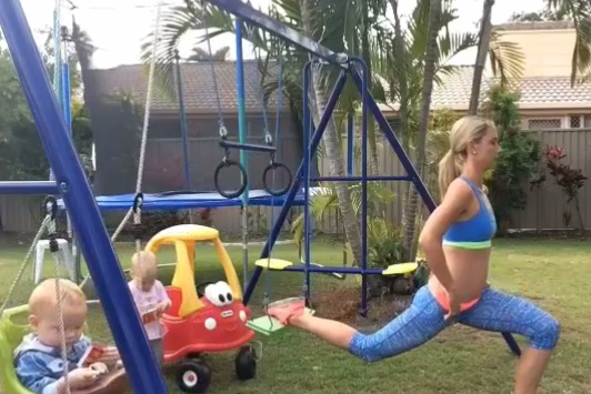C’est à travers son blog Staystrongmommy.com que cette maman australienne de 31 ans s’est amusée à allier ses séances de sport avec les séances de jeu de ses jeunes enfants !