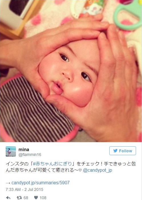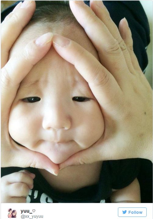 Avec sa photo, l’acteur a ajouté le hashtag #RiceBallBabies. Ni une ni deux, le web s’est rempli de photos de bébés où les mains des parents forment un triangle autour du visage de bébé pour le gonfler. En voyant les photos qui circulent, on a qu’une seule envie : embrasser leurs joues bien joufflues !