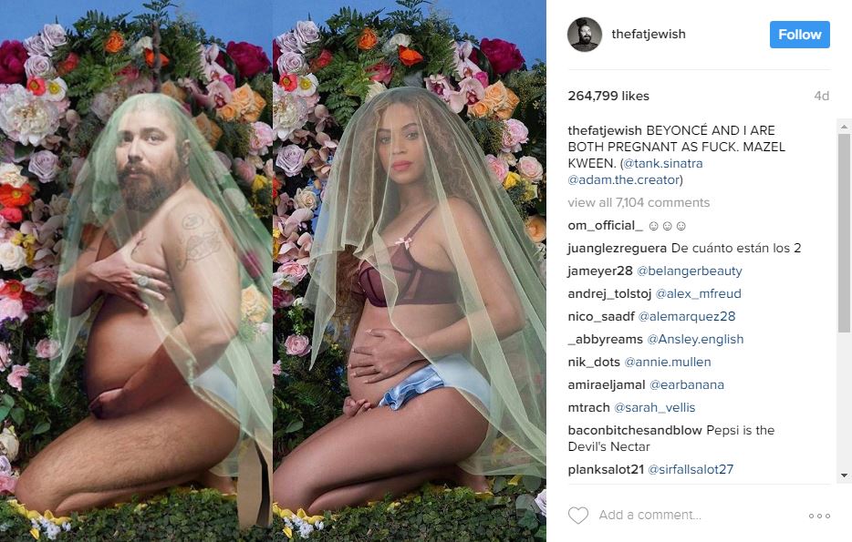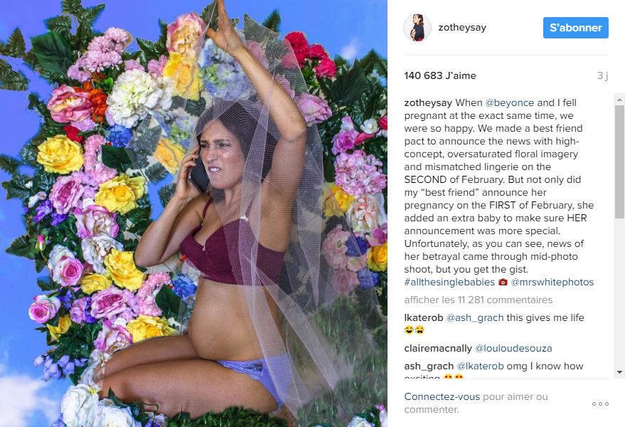 Presque 10 millions de « j’aime ». C’est officiel, l’annonce de grossesse de Beyoncé sur Instragram est désormais la publication la plus populaire du réseau social. Reine du buzz, Queen B a visé juste en gardant le secret de sa grossesse le plus longtemps possible pour partager avec ses fans une magnifique photo de son baby bump, puis tous les clichés de son incroyable shooting photo. Ni une ni deux, les stars du monde entier n’ont alors pas hésité à surfer sur ce succès en posant eux aussi comme une Madone dans son nid de verdure. Leurs parodies valent le détour !