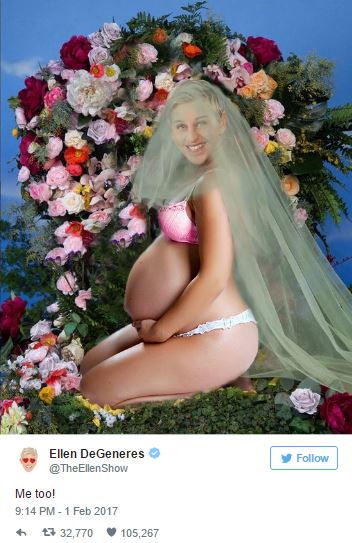 Que ce soit la célèbre présentatrice américaine Ellen DeGeneres ou encore Camilla Luddington et Ellen Pompeo (alias Meredith Grey et Josephine Wilson dans la série Grey’s Anatomy), la planète people n’est pas restée indifférente au buzz médiatique de la semaine dernière concernant la grossesse de Beyoncé. A leur tour, les stars ont répondu à cette annonce en parodiant avec humour le cliché de Beyoncé. Camilla Luddington en a par exemple profité pour annoncer sa propre grossesse avec l’aide de son amie Ellen Pompeo qui jouait, le temps d’une séance photo, la photographe assistante. De son côté, Zoë Forster Blake, une célèbre entrepreneuse et auteure australienne a récolté plus de 100 000 « j’aime » pour son photomontage complètement décalé. En Australie, un acteur de feuilleton a repris quant à lui la pose de la chanteuse dans un post accompagné d’un commentaire hilarant : » Quand ta femme essaye de manger pour deux et que toi, tu tentes de tenir la cadence ». Nul doute, chacun a su rivaliser d’ingéniosité pour atteindre un tel succès !