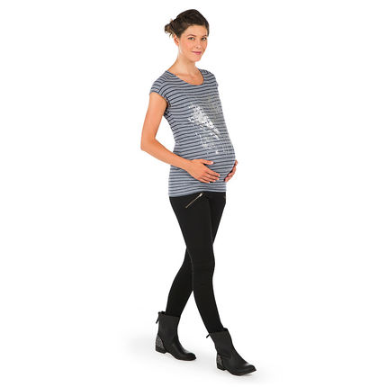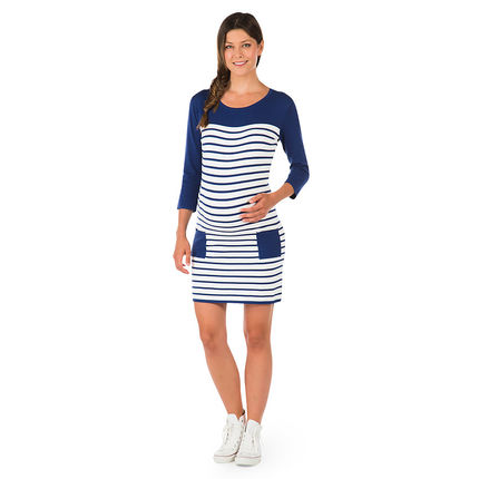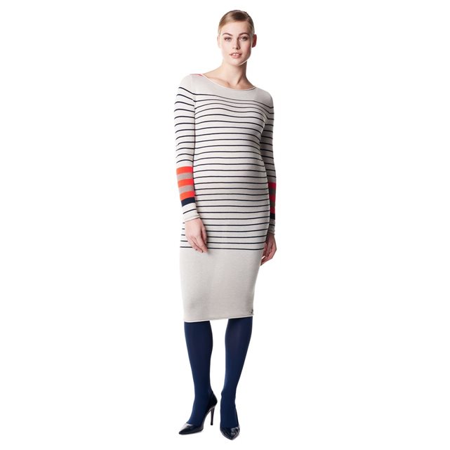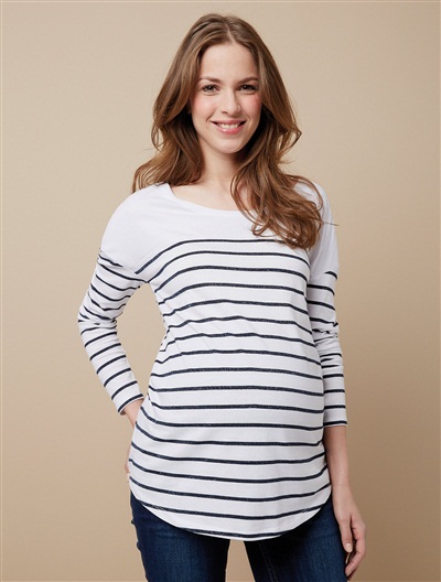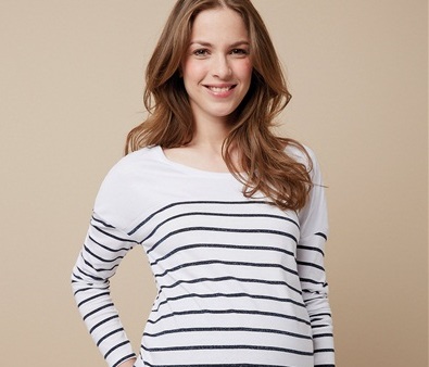 Pour vos soirées, cérémonies ou tout simplement pour créer un look chic au bureau, il suffit d’accessoiriser cette jolie robe marinière avec des petites ballerines, des collants opaques, un rouge à lèvres pimpant et un joli chignon. Robe Noppies, chez La Redoute, 79,99 euros.Portez la marinière de façon traditionnelle : tee-shirt rayé à manches longues avec un jean pour créer un petit look seventies irrésistible ! On peut également casser le style avec un slim noir et un perfecto pour un look plus rock. Marinière de grossesse fil brillant, chez Vertbaudet, 12,56 euros.Si vous êtes plutôt décontractée, optez pour cet ensemble composé d’un pantalon de jogging d’intérieur en jersey à rayures mouchetées et d’un sweat-shirt assorti. On est à l’aise sous son plaid, une bonne tisane et un super film pour passer le week-end au chaud ! Sweat à rayures mouchetées et pantalon de jogging Maternité, chez TopShop, 58 euros.Ce cropped top de grossesse (« haut court » en français) nous a séduit par son esprit marinière et sa matière structurée. Il s’associera parfaitement avec une jupe ou un pantalon de grossesse taille haute, ou en superposition sur un débardeur ou un tee-shirt. Avec ses manches 3/4 et son imprimé à rayures, il deviendra vite une pièce maîtresse de votre dressing ! On l’aime aussi porté avec une salopette. Haut de grossesse marinière court, chez Emoi Emoi, 49,99 euros.Une jolie tunique esprit « petit marin » qui s’adapte facilement à tous vos looks du plus habillé au plus décontracté : on dit oui. Son petit plus ? Son imprimé argenté qui donne une touche de modernité à la marinière. Prémaman, chez Orchestra, 27,95 euros.La fameuse robe chemise, pratique, légère et chic ! On l’aime porté avec une petite ceinture rouge en-dessous de la poitrine pour marquer son joli bidou. Petit conseil de Neuf Mois ? Complétez la tenue avec des ballerines rouges vernis pour être glamour. Esprit for Mums, chez La Redoute, 79,99 euros.Un haut de grossesse classique qui plait et passe partout c’est celui-ci que l’on veut ! Vous pouvez la revisiter en la superposant à une chemise blanche. Placez-la en-dessous de la marinière et faites déborder les manches en les repliant sur la marinière. Esprit for Mums, chez La Redoute, 49,99 euros.C’est une robe qui se porte toute l’année, pendant la grossesse et pour allaiter bébé. L’ouverture sous la poitrine permet d’ailleurs d’allaiter facilement. Cette robe 2 en 1 s’adaptera idéalement à l’évolution de votre ventre pendant la grossesse. C’est un basique dans lequel on se sent bien et qu’on ne veut plus quitter une fois essayé. Boob Design, chez Emoi Emoi, 84,95 euros.Cap sur la mode, avec cette robe esprit marin très tendance ! On la porte de façon décontractée avec des tennis blanches. Prémaman, chez Orchestra, 39,95 euros.Ce magnifique pull est un hust-have pour être à l’aise et ne pas avoir froid ! Comment le moderniser ? Autre que le jean de grossesse brut, optez pour un pantalon ou une jupe de maternité de couleur flashy comme le rose corail, ou encore pastel comme le vert menthe ou basique comme le gris chiné. Pull Breton, chez Séraphine, 72 euros.