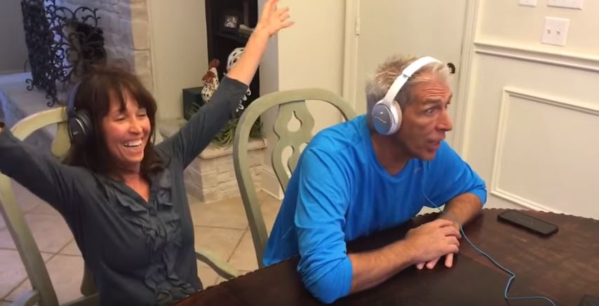 Ce couple a eu la super idée de faire deviner aux parents qu’ils allaient devenir… Grands-parents ! Grâce au jeu le Whisper Game, vu dans une émission de télévision aux Etats-Unis, ces Américains ont passé un moment émouvant et drôle. Le principe du jeu est enfantin ! Vous mettez un casque avec de la musique forte sur les oreilles de votre partenaire et celui-ci doit lire sur vos lèvres pour deviner ce que vous dites.
