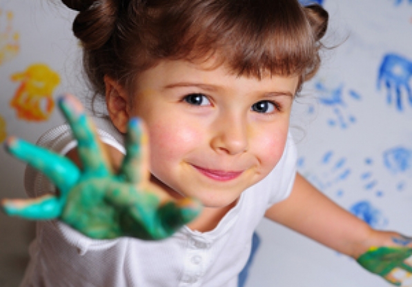 1/ Enduisez les mains de vos enfants de peinture