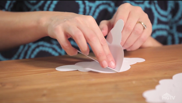 Pliez ensuite un autre nuage en deux et collez le centre sur la partie ou vous avez placé la glu et le fil de nylon précédemment, comme dans l’exemple ci-dessous.