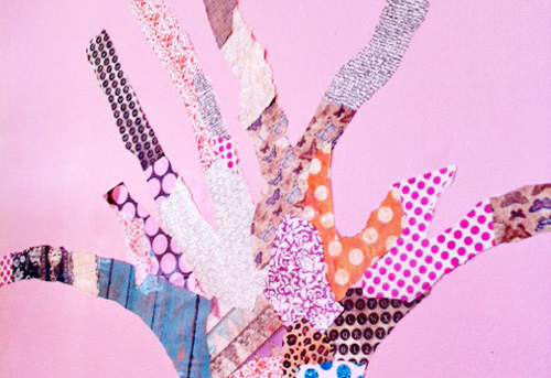 Coupez ensuite les branches à l’aide d’une paire de ciseaux. Pas besoin d’avoir des bords parfaits ! Passez ensuite à la découpe des feuilles d’arbre puis barbouillez de colle chaque pièce découpée à l’arrière avec un pinceau. Assemblez les découpes collantes au mur.