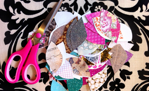 - Papier Scrapbook (toutes les tailles) environ 20 feuilles pour un arbre, à acheter dans les magasins de loisirs créatifs