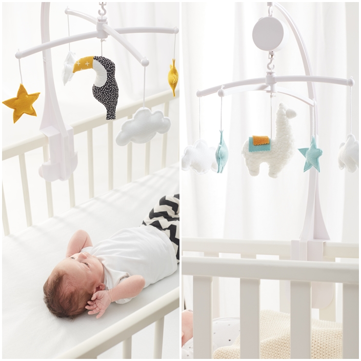 Un mobile musical ne permet pas simplement d’endormir bébé, c’est un merveilleux outil pour que bébé s’éveille. Il est donc toujours important de trouver celui qui correspondra le plus à bébé. Oubliez les petits ours ou petits lapins que vous voyez toujours sur les mobiles musicaux et laissez vous tenter par de nouveaux animaux que bébé prendra plaisir à découvrir. Pouce & Lina propose un très grand choix de motifs. Avant de s’endormir, bébé pourra plonger dans l’univers de la savane en découvrant au-dessus de sa tête des éléphants ou des petits zèbres. Pour en faire un grand amoureux des fonds marins, vous pourrez choisir plutôt un mobile avec une jolie baleine ou un petit hippocampe. La marque met un point d’honneur à suivre les tendances déco alors après avoir introduit les flamants roses et les licornes dans son catalogue, Pouce & Lina a crée cette année des mobiles avec des toucans et des lamas.