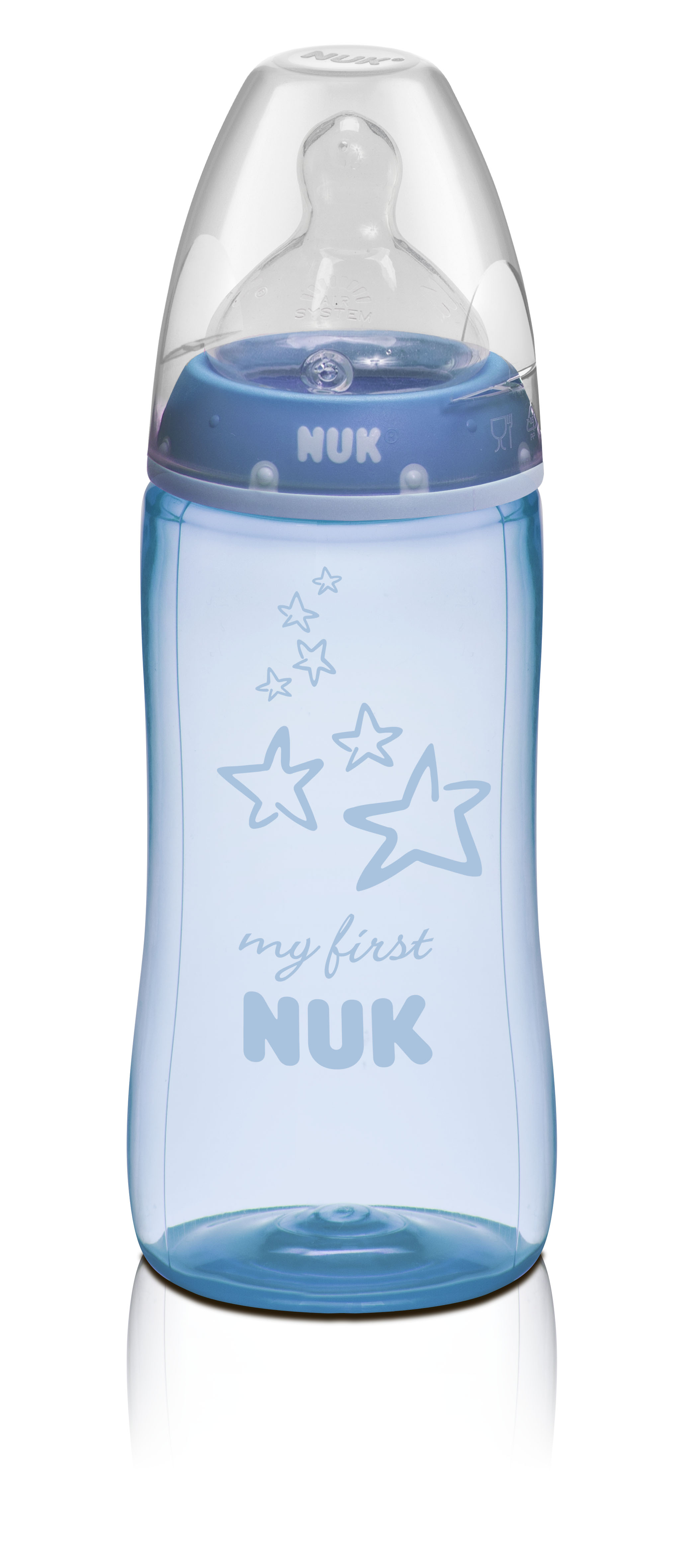 La tétine Nuk a été développée sur la base d’observations échographiques pour imiter la forme du sein pendant la tétée et offrir à bébé une tétée la plus naturelle possible. C’est d’ailleurs pour cela que les nourrettes des maternités sont équipées de tétines de la marque, à usage unique et conditionnées sous emballage stérile. Tout nouveau sur le marché, un coffret sortie de maternité composé d’un biberon de 150ml et de 3 tétines à usage unique (2 tailles 1 perçage S + 1 taille 1 perçage M pour les liquides épaissis) permet de poursuivre l’alimentation de bébé au biberon sans changer ses habitudes de succion, et cela d’autant plus qu’il est possible de se procurer des coffrets de 10 tétines à usage unique pour les tétées suivantes. Vendue exclusivement en pharmacie, cette gamme est dédiée aux nouveau-nés pour qu’ils n’aient pas de problème d’adaptation à de nouvelles tétines pendant les premiers jours.
