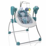 La balancelle Swoon Bubble de chez Babymoov offre deux choix d’inclinaison. Le balancement peut se régler en 5 vitesses et son temps est programmable en 8, 15 ou 30 minutes.  Elle dispose d’un harnais 5 points pour assurer la sécurité de bébé. Le pliage est pratique, facilitant les transports avec votre enfant. La balancelle dispose aussi d’un cale-tête amovible et d’une arche de jeux détachable. Son poids est de 4,35 kg, idéal pour les parents nomades.