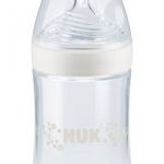 Le biberon Nature Sense de Nuk possède une tétine équipée de micro-perçages, permettant l’imitation des canaux lactifères du sein maternel. La tétée est ainsi plus régulière et semble plus naturelle pour bébé. L’ouverture large permet de remplir le biberon plus facilement et de le nettoyer en profondeur. Il est équipé d’un capuchon anti-fuite, idéal contre le gaspillage. Il est disponible en deux formats : 150 ou 260 ml et existe en 4 coloris : rose, blanc, vert et bleu. Il est le produit idéal pour bébé lorsque celui-ci passe du sein au biberon.