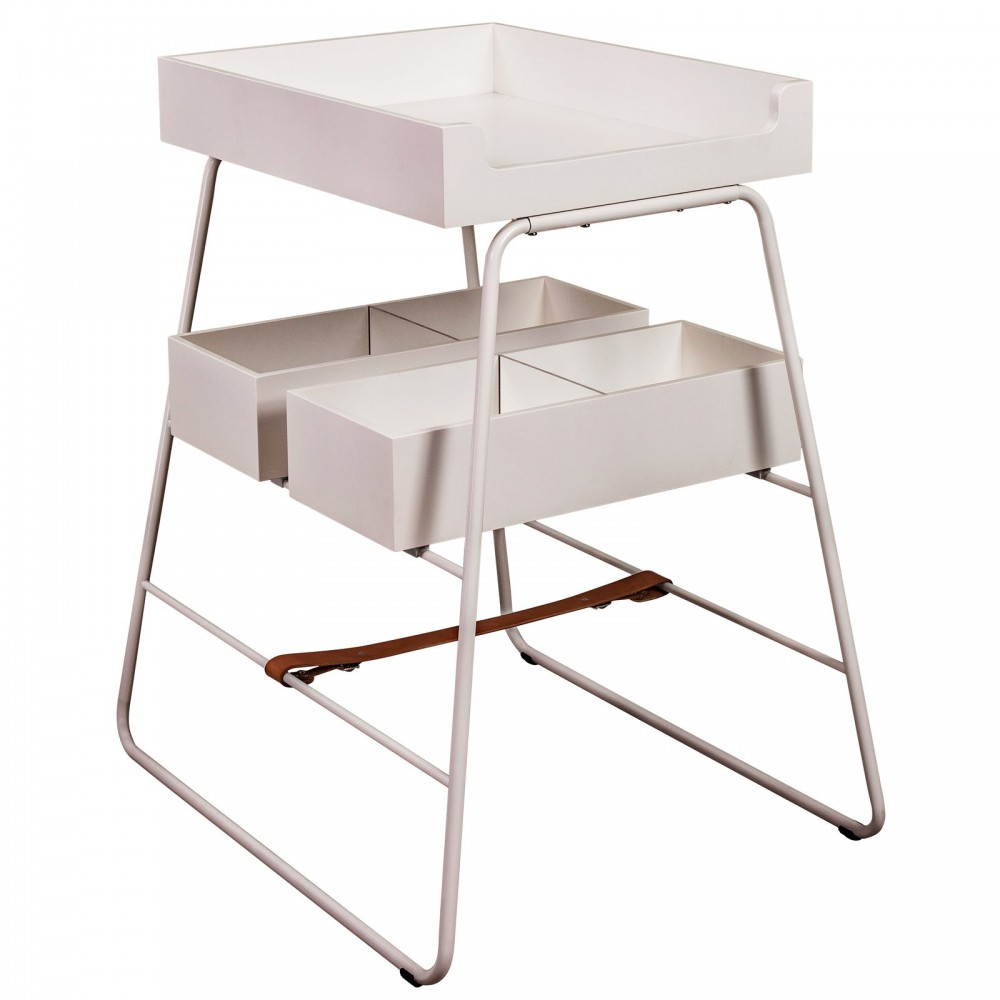 La Changing Tower de BudtzBendix accueille bébé jusqu’à 11 kg. Ses tubes sont en acier pliés et peints. Son plan à langer est en bois et ses lanières de fixation sont en cuir. Les 2 boîtes de rangement sont hyper fonctionnels. Par contre, le matelas à langer est vendu séparément. Ses dimensions sont de : L. 88 x l. 69 x h. 90 cm.