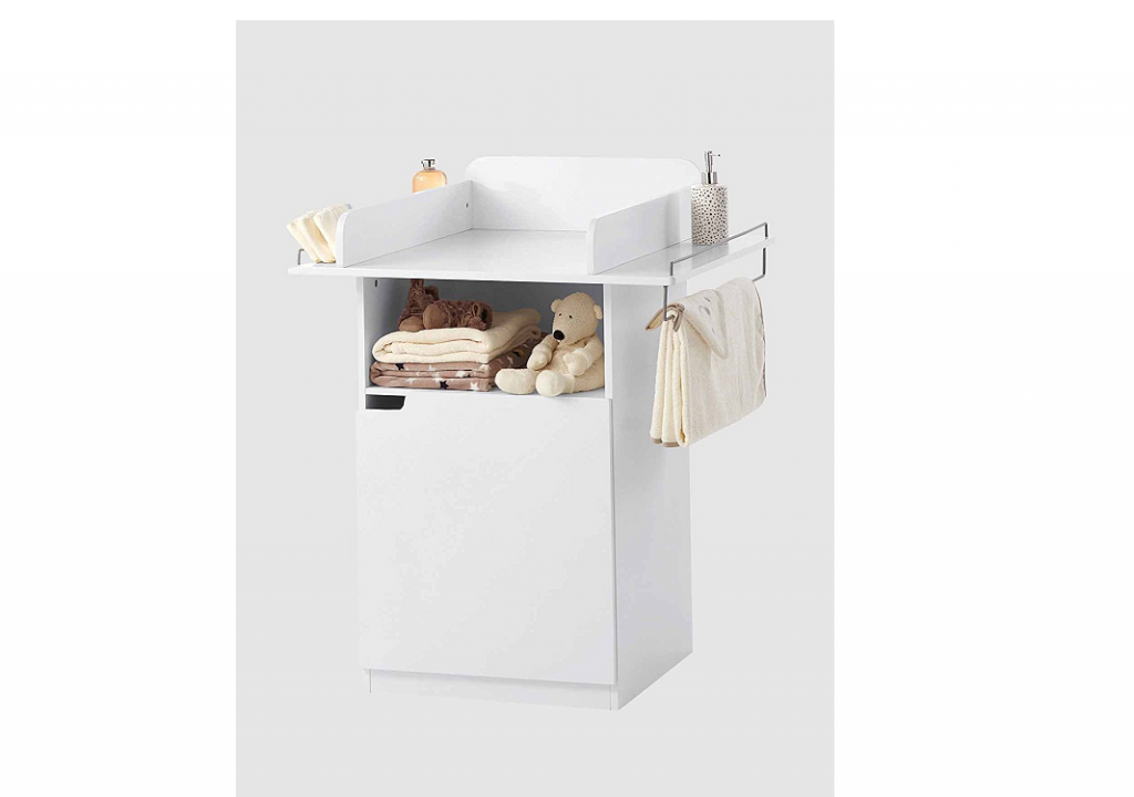 L’Espace à langer BabySpace de Vertbaudet accueille bébé jusqu’à 15 kg. Ses panneaux sont en fibre de bois avec une finition laque. L’Espace à langer est aussi doté de tablettes de rangement hyper pratiques et d’une tringle porte-serviette. Le compartiment pour les couches et le placard avec une étagère réglable 3 hauteurs permettent une utilisation de l’espace optimal. Pour s’adapter à la décoration de la chambre de bébé, il existe aussi en blanc. Ses dimensions sont de : L. 75 x l. 70 x h. 95 cm.