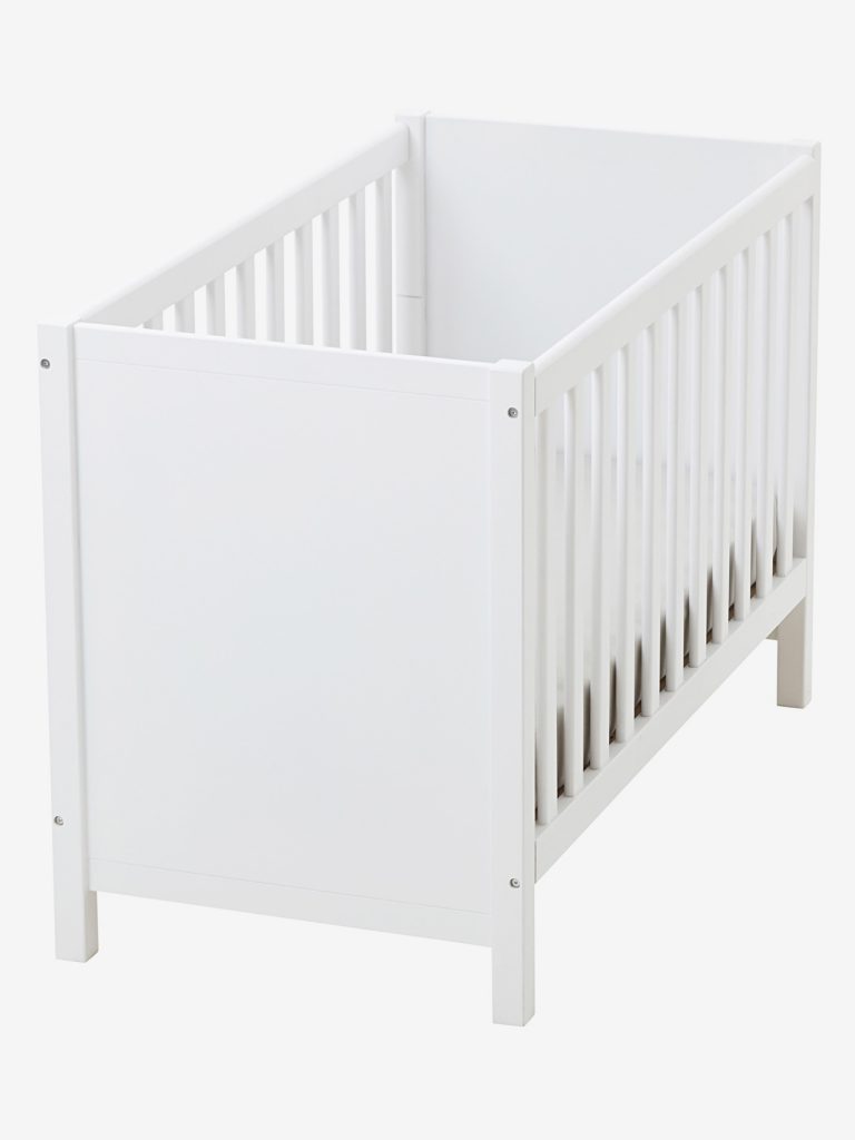 Sa structure est en pin massif et ses panneaux de fibre de bois sont finis à la peinture mate. Son sommier est réglable 3 hauteurs (lit bébé) et les barreaux sont amovibles pour créer le lit junior. Dimensions : L. 140 x l. 70 cm.