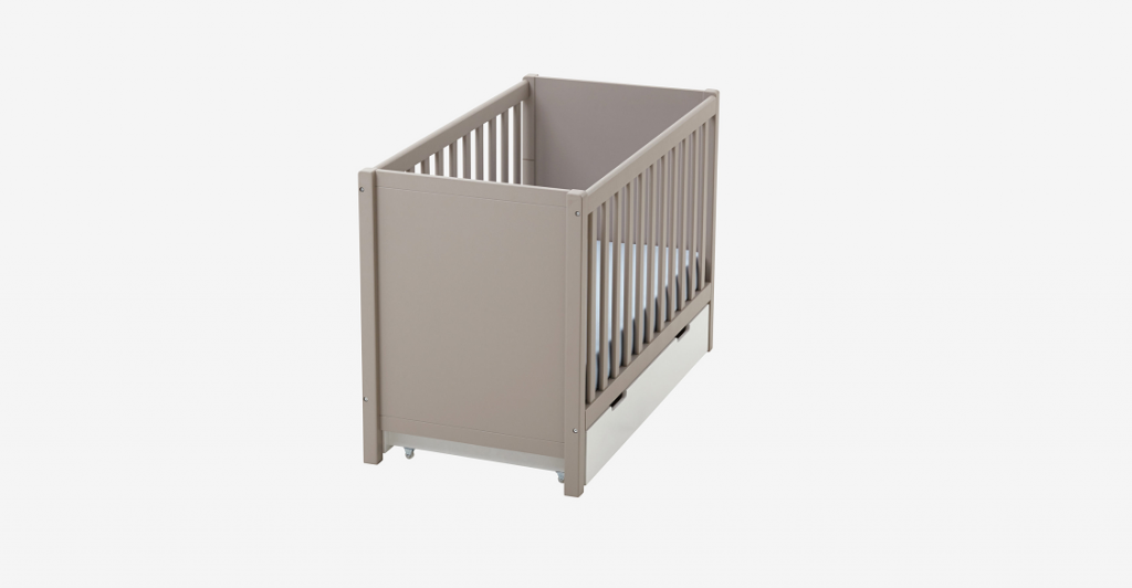 On aime : sa couleur très chic ; ses lignes sobres ; le lit junior à taille réduite, plus confortable pour un tout-petit (et gain de place).