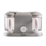 La version double cuves du célèbre Babycook garde les atouts de son prédécesseur à une seule cuve mais y ajoute beaucoup de praticité. Comme avec le Babycook traditionnel (1 cuve), vous pourrez décongeler, cuire à la vapeur, mixer et réchauffer les repas de bébé. En quinze minutes chrono, le petit plat de bébé sera cuit. Et l’avantage, vous l’aurez compris, c’est de pouvoir cuisiner deux plats (entrée, plat, ou plat et dessert) en même temps. C’est un gain de temps appréciable. Côté pratique, vous apprécierez particulièrement la graduation des bols de grande contenance (1100 ml) qui facilitent la réalisation des recettes ainsi que les accessoires fournis (panier vapeur, spatule, filtre à smoothies et livre de recettes). Côté nettoyage, le couteau de mixage s’enlève très facilement et l’appareil dispose d’un indicateur de détartrage bien utile pour éviter d’abîmer la mécanique. Côté sécurité, le système de verrouillage est facile à utiliser et très sécurisant, tout comme l’arrêt automatique en fin de cuisson.